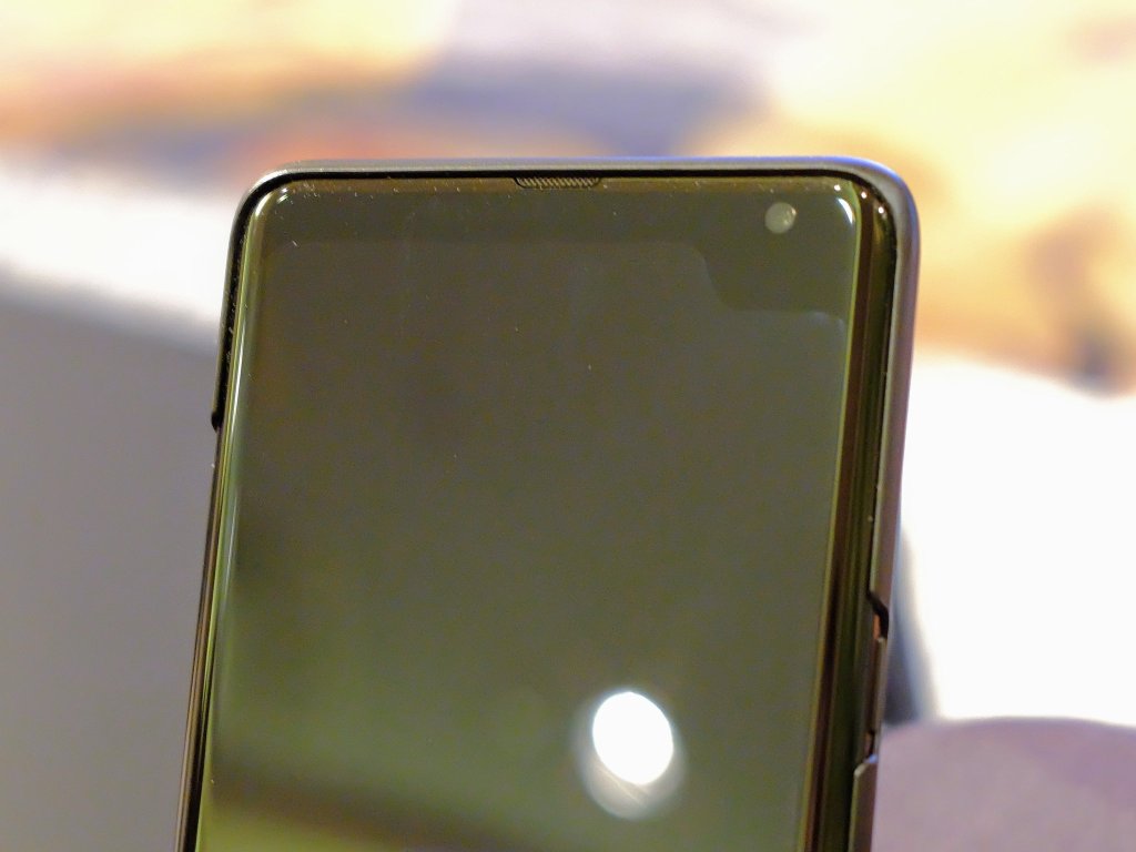 نموذج هاتف سامسونج والذي يظهر في الصور الموجودة بالأسفل يتواجد به نوتش تصميمه غريب متواجد على الجانب الأيمن من الهاتف ويتواجد نوتش في الهاتف على الرغم من وجود حافة بالأعلى.